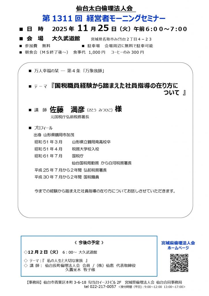 2025年11月22日 / 最終更新日時 : 2025年11月22日 taihaku MS開催情報 2025年11月25日(火) 経営者モーニングセミナー開催 FacebooktwitterHatenaPocket コメントを残す コメントをキャンセルメールアドレスが公開されることはありません。 * が付いている欄は必須項目ですコメント 名前 * メール * サイト 次回のコメントで使用するためブラウザーに自分の名前、メールアドレス、サイトを保存する。 上に表示された文字を入力してください。
